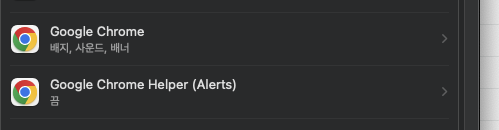 - 맥북은 크롬 아이콘이 뜨고 윈도우는 안뜨는데 저 크롬 아이콘을 안보이게 할 순 없습니다.